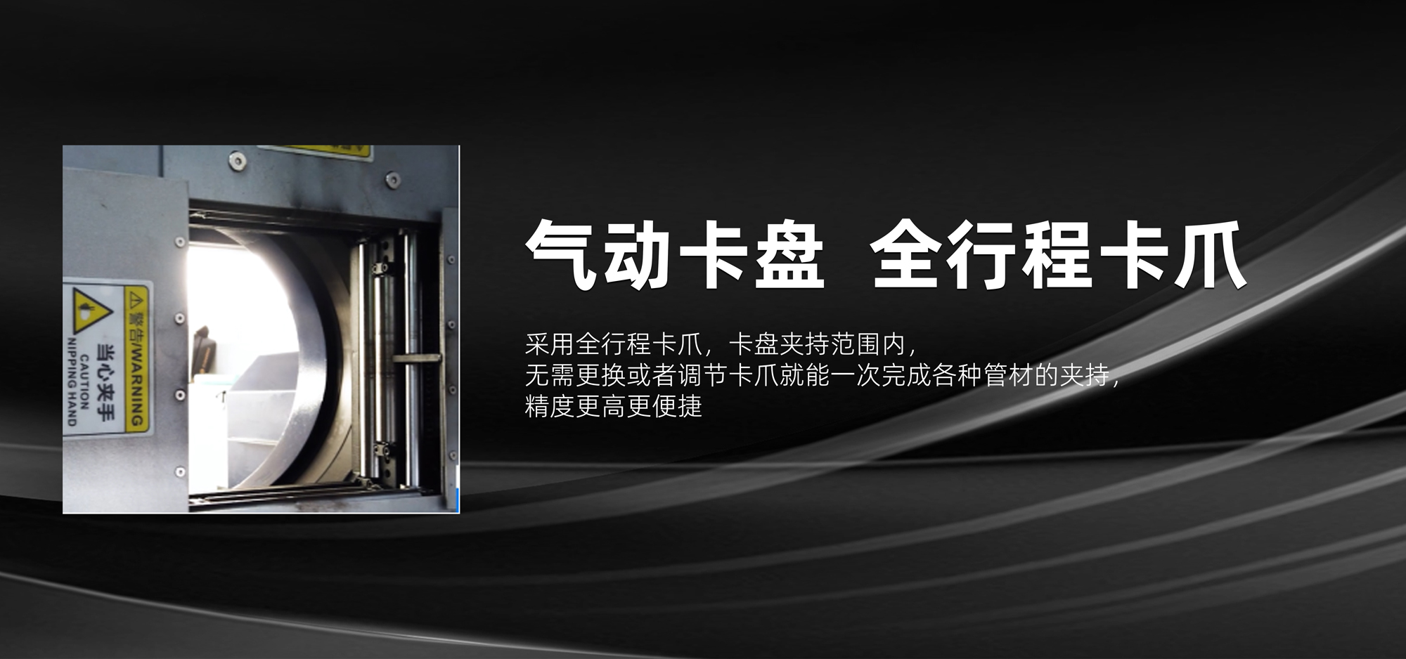 自定心氣動(dòng)卡盤,帶有薄管保護(hù)限位,保證薄管裝夾無損